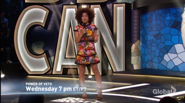 As for the bombshell announcement, Arisa tells the audience that Canada will be able to vote to save 1 of the nominees from the block on Wednesday night or leave the nominations the same and use this power the following week. So, we can vote on a veto for our favorite nominee. Talk about blowing up someone’s HOH. Is this TOO much audience participation?