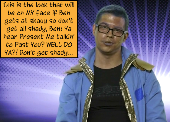 I LOVE IT!!! If they pull this off, the Secret Six MUST go down as one of the best alliances in reality TV history, especially the Girl Power alliance that started it because those girls are totally going to Britney Haynes those boys. (Sorry, Brit, I LOVE YOU!!!). If they stay six strong, they can control who goes to the Nerd Offs every week from here on out and once everyone else is gone, the suspect the girls would go after the boys and we’ll be crowning another Queen of the Nerds. Unless people get shady… Ben has some doubts about this little agreement between teams; can they really trust the SMASH people? If it were HIM who had come up with this great plan, he would say that’s the plan, but continue to vote SMASH’s strong players into the Nerd Offs. Aw, come on, Ben! You were right on with the “we need to get one of the cosplay girls out”, but duuude… This is a good alliance for you. It keeps you safe. You have the numbers! Don’t do anything shady!!!
