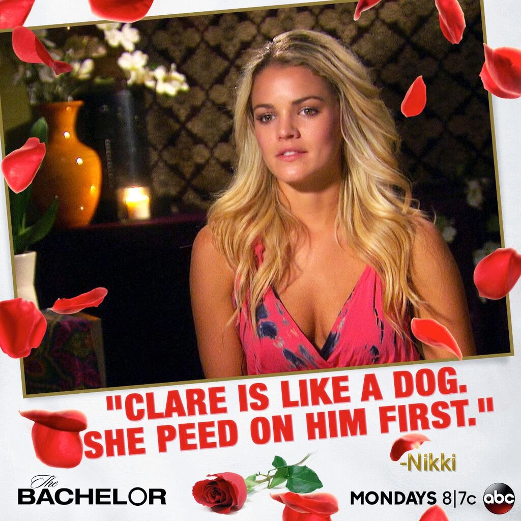 Chelsie, Renee and Clare are all sent back to the hotel. Team Clare are all aghast that they are there. Clare wanted a fight so she starts to hint that Juan Pablo gave the rose to Andi because she needed the reassurance and she didn’t deserve it. Nikki want to hear none of it sensing it will become a bash Andi conversation and leaves for her room. Clare feels disrespected and follows her. The squabble and Nikki finally asked her to please leave her room now. The fight now gets down to the it’s not your room you didn’t pay for it level because Clare can’t think about the level of an 8 year old. Nikki finally loses it and calls her effin crazy and Clare storms out. Nikki has one of the best diary rooms ever!!! “Clare is like a dog, she peed on him first” is the best line I have heard in a long time. Unfortunately he is not her territory, but Clare doesn’t know that.