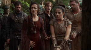 Last week’s episode ended with an unknown beast entering the camp, presumably having tracked the Queen via her pendant. This episode begins with the Paladins sitting around the campsite in the morning, so whatever beast visited last night seems to have left as quietly as it came. Minutes after the Queen, Ansgar and Crio join the